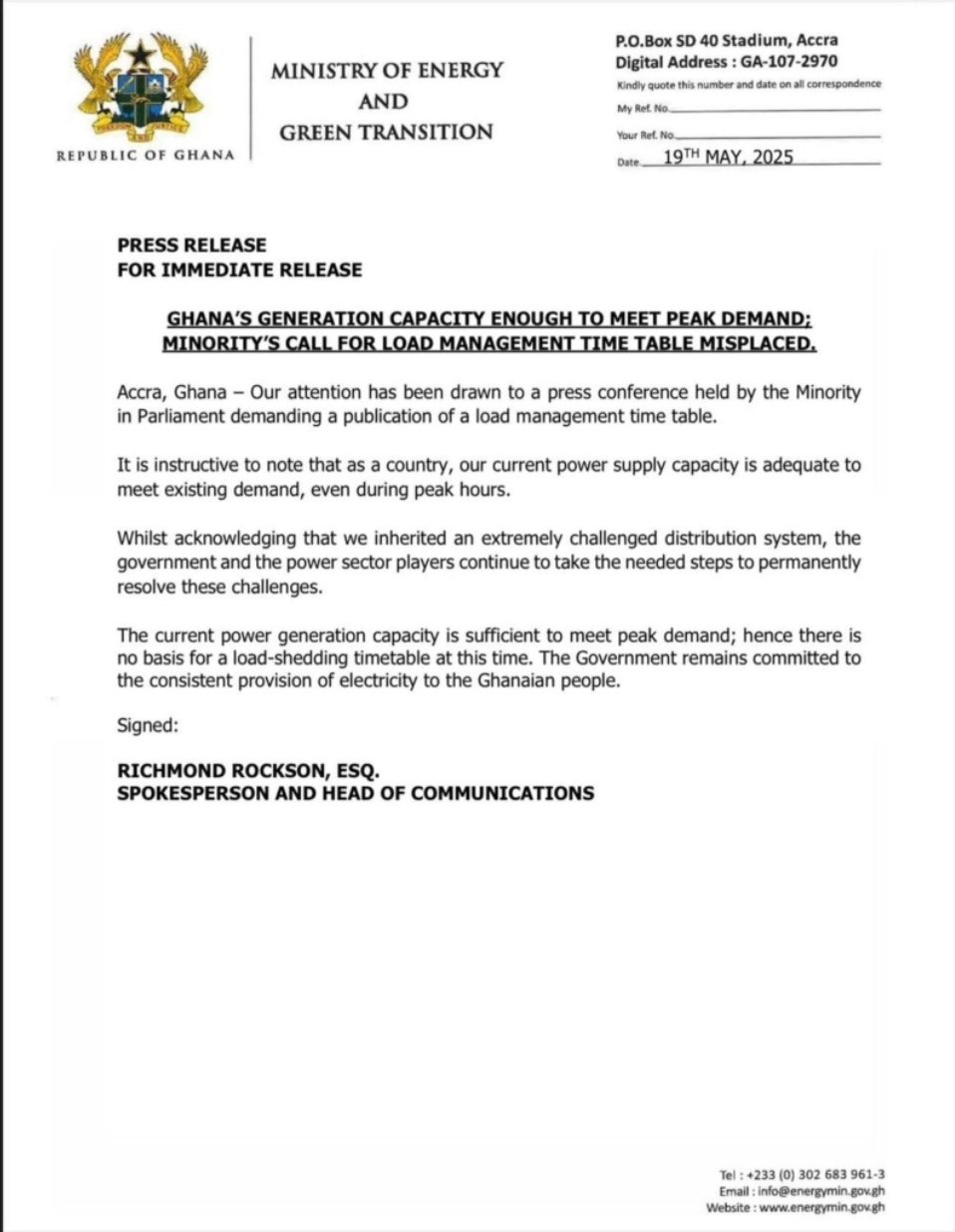 This back-and-forth between the Ministry and the Minority comes at a time when many Ghanaians are growing frustrated with the unstable power supply. While the government maintains there is enough electricity being produced, critics say the issue lies with how that power is being distributed and want clear solutions laid out.
